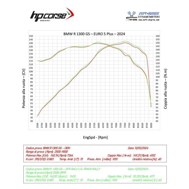SPS RALLY ist ein neuer Auspuff, sehr gut proportioniert in Größe und Volumen, kurz und kompakt, perfekt für die BMW R 1300 GS ADVENTURE. Ein „OFFENER“ Schalldämpfer, da er EURO 5 PLUS-zugelassen ist, jedoch ohne DBK, und somit den aktuellen Vorschriften voll entspricht. Dadurch konnten wir eine hohe Leistung und ein hohes Drehmoment erzielen und dem BMW-Zweizylinder einen angenehm tiefen Klang entlocken, der sich deutlich vom Originalschalldämpfer unterscheidet. Die Schalldämpferhülse besteht aus Titan und schwarzem Keramiktitan mit einer Dicke von 0,8 mm und hat eine Länge ohne Endkappen von 270 mm. Die Endkappe besteht aus Carbonfaser „Made in Italy“ und verfügt über ein wabenförmiges Metallschutzgitter aus gebürstetem Edelstahl. Die ebenfalls aus Carbon gefertigte Abdeckung greift die stilistische Gestaltung der Heckabschlusskappe auf und verleiht dem Terminal einen Rallye-Charakter, der auf lange Reisen und Abenteuer anspielt. Die Armatur ist aus Edelstahl gefertigt und manuell WIG-geschweißt. Lasergraviertes Logo.