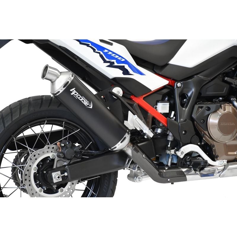 Die neue CRF 1100 Africa Twin verkörpert den absoluten Wunsch nach Freiheit, nach weiten, offenen Flächen, nach unbefestigten Straßen voller Staub und Steine, aber auch nach Straßen und Asphalt, um überall dorthin zu gelangen, wo Ihre Erkundungs- und Entdeckungslust Sie hinführt. Der Hubraum ist auf 1084 ccm gewachsen, ebenso wie Leistung und Drehmoment. Ein Motorrad, dem HP CORSE zwei seiner neuesten Kreationen gewidmet hat: die 4-TRACK ReSPS CARBON-Auspuffanlagen (beide Euro 5/5 Plus-zugelassen), geboren im Herzen des Motor Valley, wo Qualität und Design kleine und große Meisterwerke schaffen können, indem Metall in etwas verwandelt wird, das wirklich den Geschmack von Leidenschaft hat, und den brandneuen SP-1. SP-1 aus hoch positioniertem Slip-On aus Titan, eine Lösung, die uns mittlerweile auszeichnet und die nicht nur ästhetisch schön, sondern auch funktional ist, da sie den Auspuff – in den meisten Fällen – schont, falls das Motorrad auf der rechten Seite auf dem Boden steht. Eine beliebte Wahl für Offroader und Reisende mit weichem Gepäck. SP-1 ist ein Auspuff mit einer 350 mm langen Titanhülse, auf der das HP CORSE-Logo lasergraviert ist, mit sehr leicht bedruckten konischen Endkappen und ist mit einer einzigartigen Auspuffauslassdüse ausgestattet, da er im Neigungswinkel keine Schweißnähte aufweist. Die Armatur besteht aus rostfreiem Stahl, ist zum Aufstecken mit Schnellverschluss vorgesehen und wird mittels CNC-gedrehter Stahlbuchsen mit dem Terminal verbunden. In dieser Konfiguration sind zwei Carbon-Abdeckungen vorhanden: die erste, untere, die das ursprüngliche Stahlteil unter dem Krümmer stilistisch perfekt fortführt, während die zweite, kleinere den Beifahrer vor jeglichem Kontakt mit der Verbindung schützt. Der Auspuff ist Euro 5/5 Plus zugelassen und wird mit Zulassungszertifikat, Garantie und Montageanleitung geliefert. Der SP-1 in niedriger Ausführung mit einer Schalldämpferkörperlänge von 400 mm verleiht dem Motorrad ein ausgesprochenes Rallye-Design und garantiert einen tiefen Klang sowie eine bessere Leistung in puncto Drehmoment und Leistung im Vergleich zum Standardauspuff, wobei die von den europäischen Vorschriften geforderten Toleranzen eingehalten werden. Titan-Shirt und schwarzes Keramik-Titan-Shirt mit lasergraviertem Logo, WIG-geschweißter Verbindung und integrierter Kohlefaser-Wärmeabdeckung. Euro 5/5 Plus zugelassen, Garantie und Montageanleitung inklusive. Das 4-TRACK R für die AFRICA TWIN liebt weite Landschaften und Abenteuer. Ausgiebig auf dem Prüfstand und auf allen Straßen (ON und OFF) getestet, verleiht es dem Charakter der neuen CRF einen noch aggressiveren Charakter, der jetzt bei niedrigen und mittleren Drehzahlen hervorsticht und maximale Zuverlässigkeit in jeder Situation gewährleistet. Zudem verbessert es dank eines leichteren und schlankeren Hecks auch in ästhetischer Hinsicht seine dynamische Leistung. 4-TRACK R ist Euro 5/5 Plus-zugelassen, verfügt über eine Hitzeschildabdeckung aus Carbon, einen Aufsteckanschluss, eine achteckige Endkappe, einen hydrogeformten Auslauf ohne Schweißnähte und einen Schalldämpferkörper mit lasergraviertem HP Corse-Logo. Erhältlich in drei verschiedenen Materialien: Titan, satinierter Stahl, schwarzer Keramikstahl. SPS CARBON unterscheidet sich vom 4-TRACK R nur optisch, da es mit einer schönen Endkappe aus Kohlefaser ausgestattet ist, die den hydrogeformten Stahlauslauf abdeckt. Es ist nach Euro 5/5 Plus zugelassen, verfügt über einen Hitzeschild aus Carbon, einen Aufsteckanschluss, ein lasergraviertes Logo und ist in drei verschiedenen Materialien erhältlich: Titan, satinierter Stahl, schwarzer Keramikstahl.