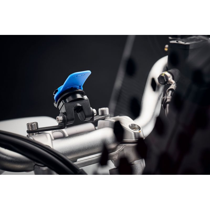 Für den Zugriff auf Ihr Smartphone unterwegs für Anwendungen wie Audio und GPS hat EP die Quad Lock-kompatible Navi-Halterung entwickelt. Die aus leichtem Aluminium gefertigte und mit der charakteristischen schwarzen Pulverbeschichtung von EP verstärkte Halterung kann mithilfe der schrittweisen Online-Anleitung an der Lenkerklemme befestigt werden. Wenn der Quad-Lock-Befestigungspunkt bereits angebracht ist, kann der Fahrer sein Smartphone in der von ihm gewählten Quad-Lock-Smartphone-Hülle unterbringen.