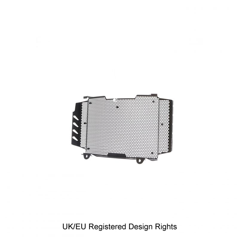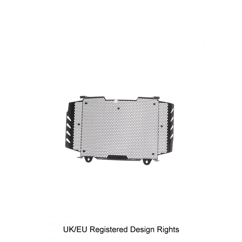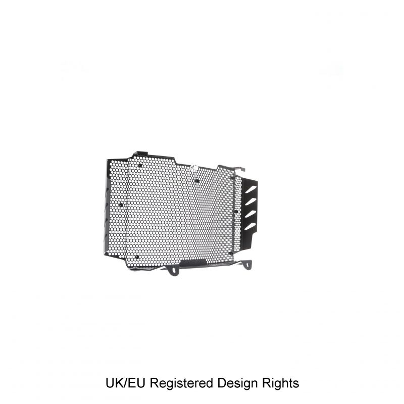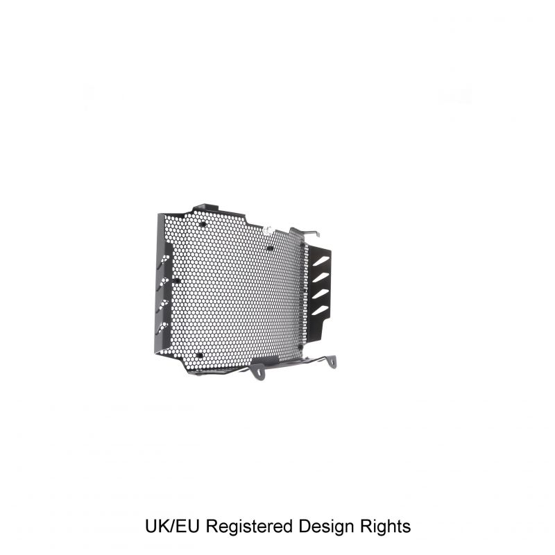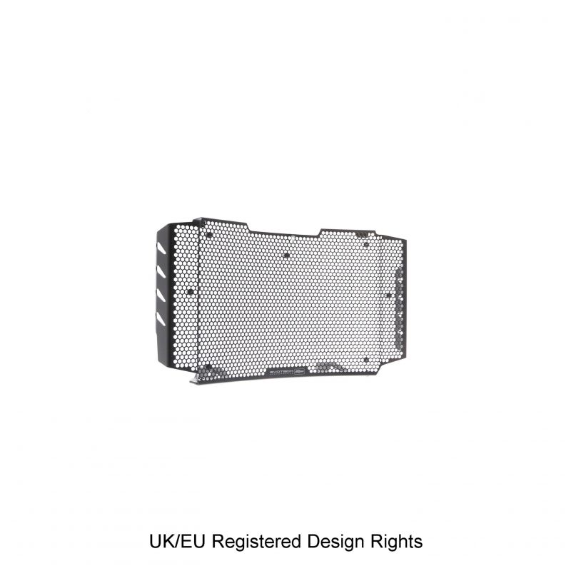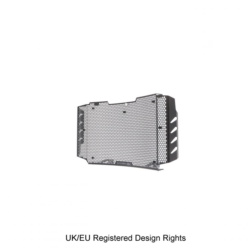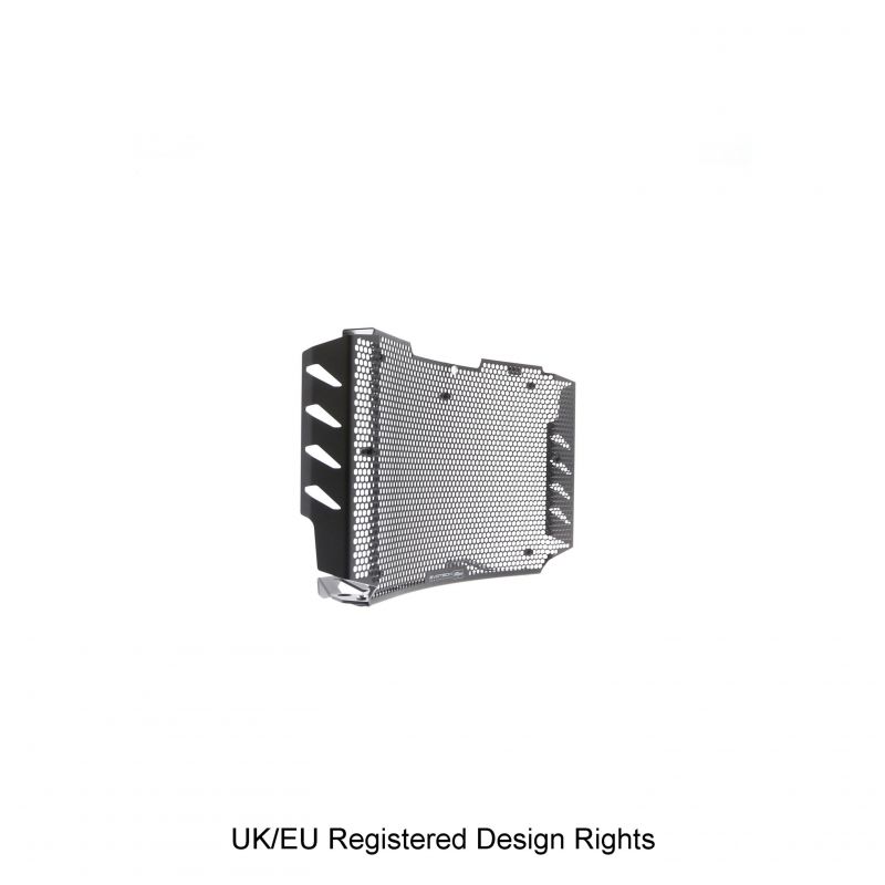 The radiator guard protects the KTM 790 Duke radiator from damage by road debris, while at the same time allowing all-important cooling air to pass through. The radiator’s cooling fins easily bend, and bent fins can restrict cooling air, which can lead to overheating. The radiator’s internal coolant-carrying core is also prone to being holed by stones - usually picked up by the front tyre and flung directly into this expensive component. Leaking coolant can make the motorcycle inoperable because of overheating, which, in turn, can lead to engine damage. Coolant can also leak onto the tyres to cause loss of grip.