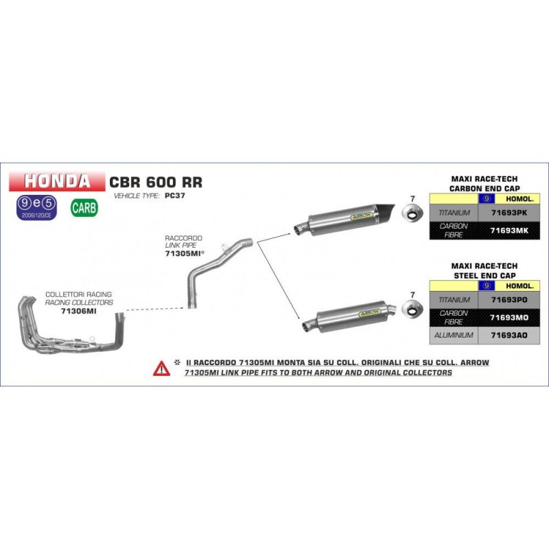 Arrow Honda Fitting CBR 600 RR 2005-2006 71305MI 600 cc - 2005,2006 - Approval: Not approved