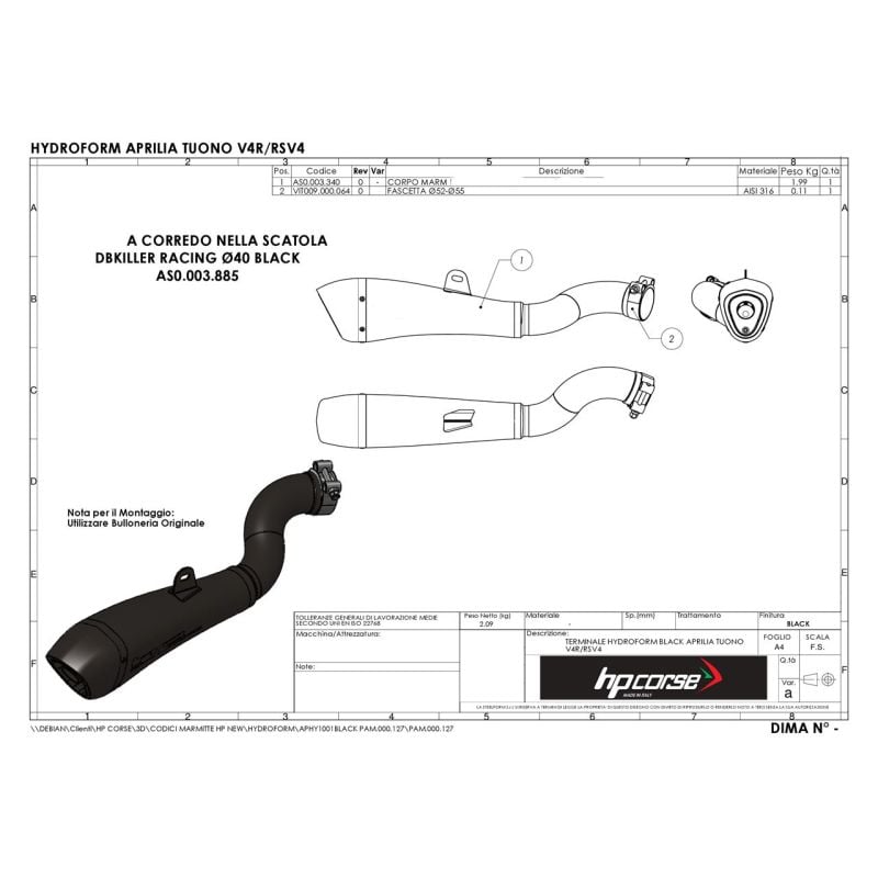 HP CORSE XAPHY1001B-N-AB HYDROFORM BLACK APRILIA TUONO V4 1100 2015-2016