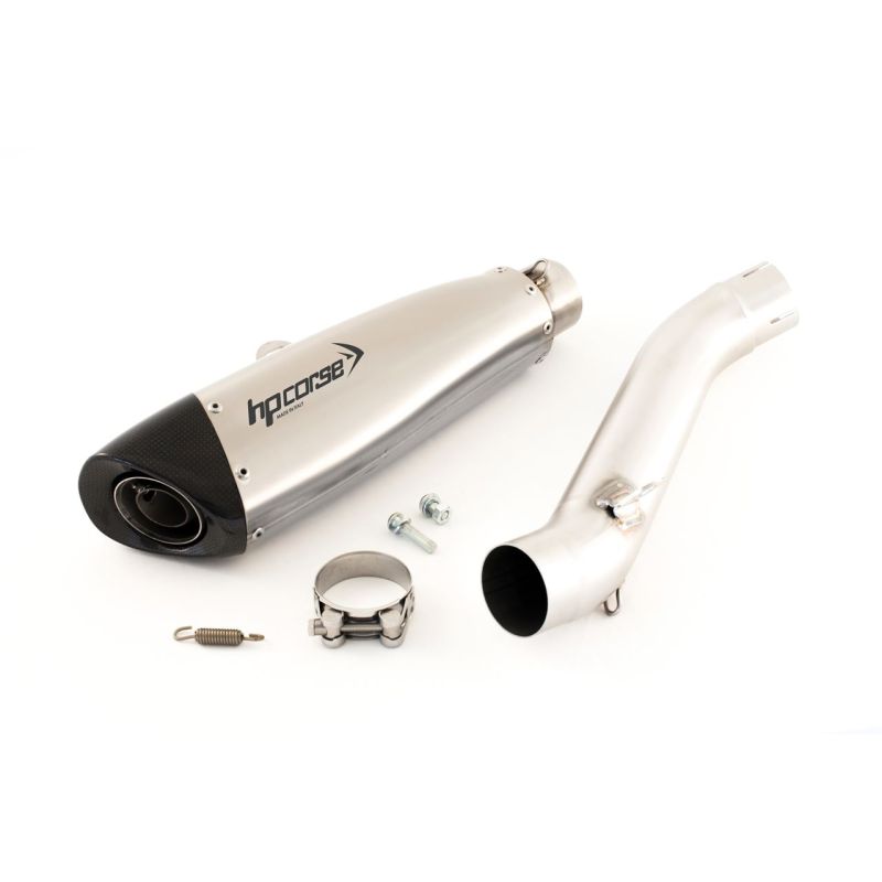Born from passion, from continuous research, from the desire to overcome our limits. Born for racing, to provide Teams and their drivers with a winning product. EVOXTREME was developed to challenge the extreme! An absolutely revolutionary line of exhausts, EVOXTREME is the desire to challenge the impossible, in all its declinations: in the absolutely new shape, in the exciting performances, in the pure and refined design. Silencer body in Titanium or Stainless Steel (satin and black satin), brand new carbon fiber end cap that takes the shape of a tapered diamond with an inclined profile in the part that meets the body of the silencer. One of the aesthetic features that make the new EVOXTREME exhaust absolutely exciting is the irregular shape of the silencer that narrows its profile towards the connection. The final result is suggestive and totally out of the ordinary! EVOXTREME was developed by the R&D Centre in Bologna, first on the bench, then on the track, achieving, thanks also to the contribution of professional drivers, absolute results capable of improving engine performance at any rpm.