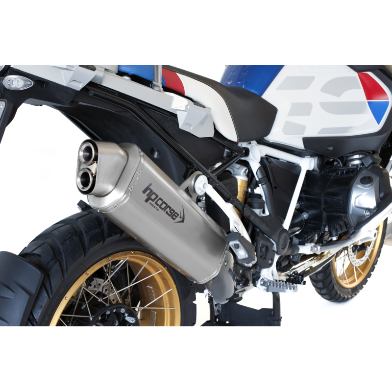 Pure and essential lines. 4-TRACK R is dedicated to the latest generation Maxi Enduro, Sport Touring/Adventure and Crossover. 4-TRACK R loves the thrill of wide open spaces and roads that disappear beyond the horizon. Designed in the Bologna R&D Center, the new HP CORSE creature is born strong, capable of withstanding the most demanding situations and the many kilometers traveled to accompany you through roads, paths, mountain passes and deserts all over the world. Tested for over a year on the test bench and on the most challenging routes, 4-TRACK R guarantees reliability and better performance than all the original exhausts it replaces, especially at low and medium revs. 4-TRACK R is light, has octagonal shaped end caps, a classic style spout but obtained using a highly advanced technology that has distinguished our company's products for many years: hydroforming. A spout without welds and a silencer body with a laser-engraved logo. Available in three different materials: Titanium, satin steel, black ceramic steel. APPROVED EURO 4/5 (EU) nr. 134/2014 and 2016/1824 G APPROVED ENGINE CODE: A74B12MTEST 4-TRACK GS1TEST 4-TRACK GS2