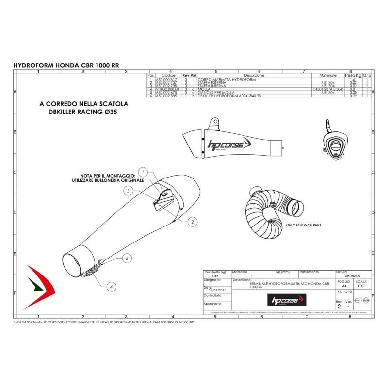 HP CORSE HOHY1012-AB HYDROFORM SATIN HONDA CBR 1000 RR 2008-2013