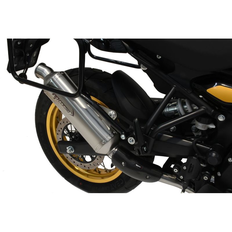 FRAME ASSEMBLY INSTRUCTIONSWhile keeping a connection to its predecessor, the new HIMALAYAN 450 has taken the Adventure market by storm: this time, the Indian manufacturer has hit the mark - with a refreshed design, an improved chassis, premium features and, at its heart, an all-new 452cc liquid-cooled 450 engine that delivers more power, torque and speed. The Himalayan 450 surprises with its essential simplicity: despite being less “rough” than its predecessor, it not only embodies simplicity made motorcycle, but also embodies the Adventura style. The all-new Royal Enfield Himalayan 450 connects rider, machine and terrain. As the manufacturer itself says, it is built for all roads, built for no roads - a one-way ticket to adventure. HP Corse has embraced the concept of the past in a new guise, developing a complete Rally system consisting of four separate modules, completely interchangeable with the original equipment: • SP-1 SHORT silencer, available in satin finish or with CERAKOTE® ceramic coating (EURO 5 APPROVED) • Central connection, to remove the original Silence Box (ONLY FOR RACE) • Non-catalyzed primary manifold (ONLY FOR RACE) • Specific spacer kit for mounting the original pannier frames The SP-1 SHORT silencer combines technology and power in just 300 mm. The oval body is made of high-quality, ultra-light stainless steel, with a laser-engraved HP Corse logo. The exhaust has conical end caps, a seamless outlet pipe obtained through a refined deformation process, and a stainless steel connection enriched by a glossy carbon cover. Euro 5 approved. Assembly instructions are included. Mounting the HP Corse exhaust with the original Royal Enfield side case frames is simple and hassle-free thanks to the specific black powder-coated spacer kit containing everything needed for correct installation. The REHI45-V spacer kit is sold separately. HP Corse further responds to the call of adventure by offering a special racing upgrade: the stainless steel central connection to remove the original Silence Box and the de-catalyzed primary manifold also in stainless steel offer an aggressive sound and improved performance worthy of a real adventure machine, without the need to remap the ECU. N.B. The REHI45-C PRIMARY COLLECTOR and the REHI45-D CENTRAL CONNECTOR DO NOT MEET THE EMISSION COMPLIANCE REQUIREMENTS FOR USE ON ROAD OR HIGHWAY.WEIGHT OF THE COMPLETE HP CORSE EXHAUST SYSTEM 3.64 Kg (- 3.88 KG compared to the original complete system)WEIGHT OF THE ORIGINAL EXHAUST SYSTEM 7.52 KGN.B. ALL COMPONENTS ARE INTERCHANGEABLE WITH THE ORIGINAL ONES
