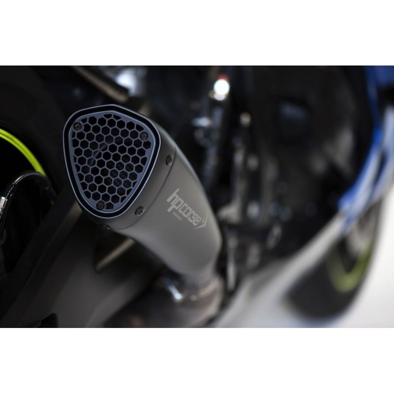 HYDROFORM SHORT R aims at the most visceral emotions of all fans of the Hamamatsu company through the research and work of those who have taken care of every detail. Hydroform Short R is born from the force of a fluid brought to very high pressures to obtain the most extraordinary shapes, variable diameters without having to cut or weld the metal. Through the hydroforming process they are surpassed to reach new and unprecedented aesthetic goals. With Hydroform Short R the steel finally frees its soul for an aesthetically unique, sinuous and exciting exhaust, without welding, reduced sheet thickness, but mechanically extremely rigid and with a record weight. Designed in Bologna, in the heart of the Motor Valley, Hydroform Short R is equipped with a very short welded connection and an anchoring system to the original manifold that allows it to be supported without a clamp or welded bracket. Available only in the racing version without dbk, it has a bottom with an oblique cut and metal mesh in perfect Moto GP style.