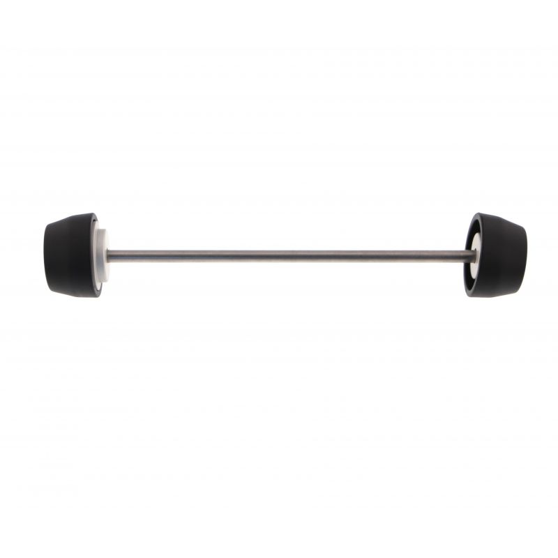 Offering protection to the front wheel spindle, lower front forks and brake calipers, EP spindle bobbins for the Ducati Diavel V4 are discreet though strong. The black bobbins fit perfectly either side of the front spindle, held in place by a rolled-thread spindle rod. At the rear, the spindle bobbin projects from the wheel offering protection to the swingarm, an anodised red hub stop securing the stainless steel rod in place. The durable materials of injection-moulded nylon and aluminium hope to be first to withstand impact should an incident occur.