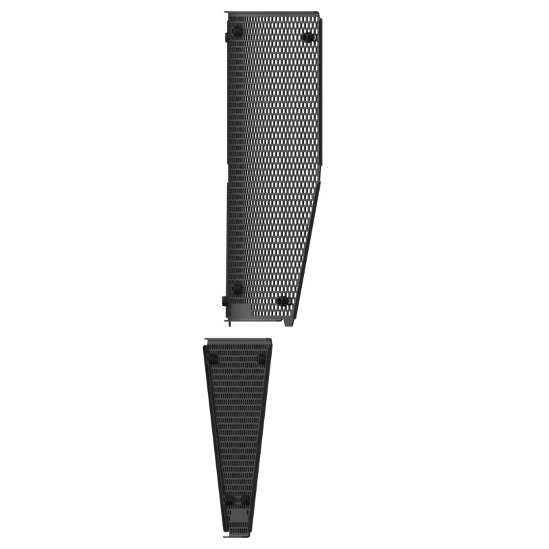 Hexagonal hole pattern to optimise airflow whilst providing maximum protection from road debris.