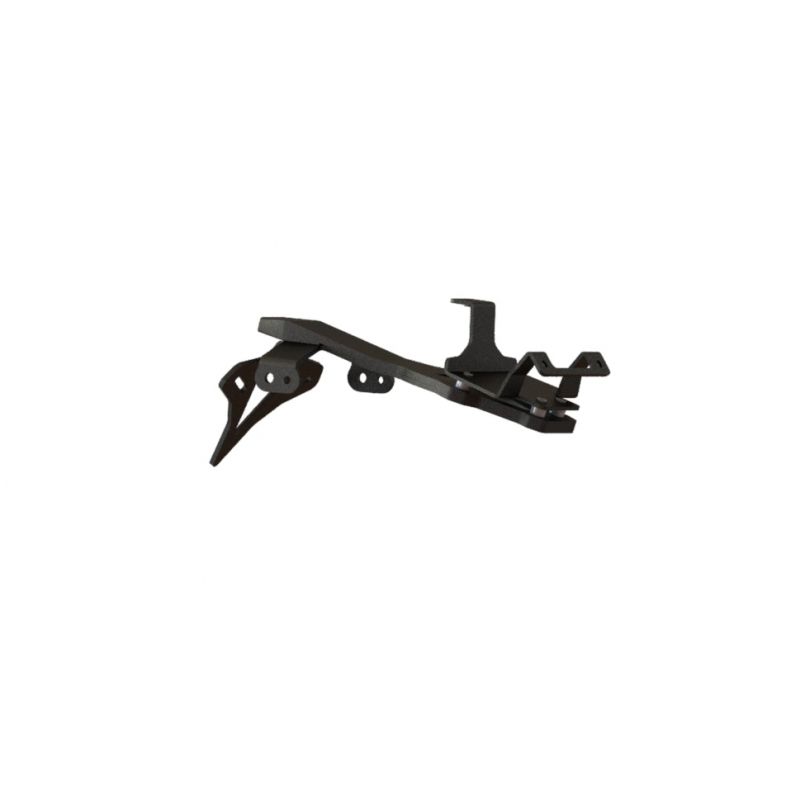 The license plate light, the original indicators as well as aftermarket models of compatible indicators can be mounted on the license plate holder if they are mounted on the original bike.The plate is fixed using the two upper holes and is compatible with all targe plates of all countries. There is no problem fixing the license plate using the two upper holes. The license plate holder is built specifically for this. On our site there is an X support for those who still want to fix the plate on 4 points (not necessary). You can find the X fixing bracket at this address: