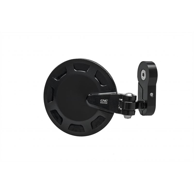 Espejo espejo-bar final hecho totalmente de una aleación ligera con la subsiguiente anodización superficiale.La superficie del espejo tiene un diámetro de 94.5mm. y se puede montar indistintamente en posición alta o bassa.Compatibile con la mayoría de los manillares, y no el original, a través del sistema de montaje de expansión (diámetro interno manillar Ø 13,5 / 19 mm) o con el tornillo M6, proporcionado en el espejo confezione.Allo combina la CV001 puente