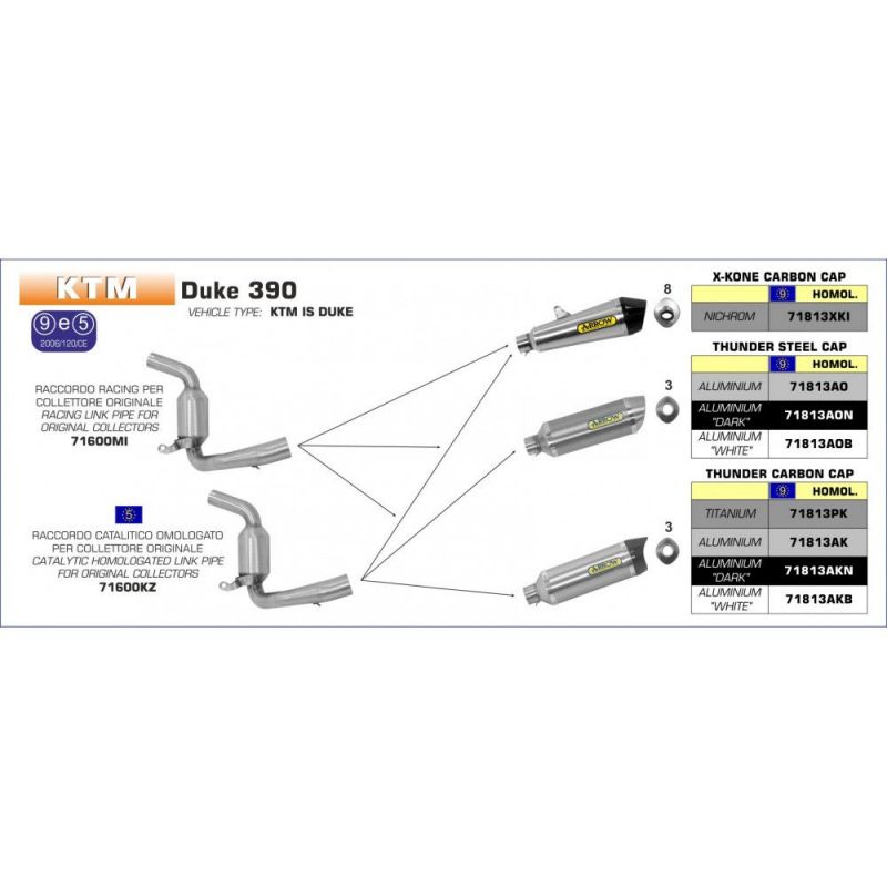 Arrow Raccordo KTM DUKE 390 2013-2016 71600MI 390 cc - 2013,2014,2015,2016 - Omologazione:Non omologato