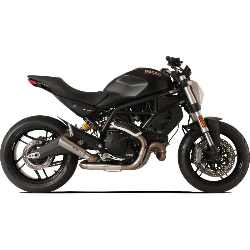 Silenciador bajo simple satinado GP07 (versión DB Killer con aro de aluminio anodizado) + conexión caracol para colectores originales DUCATI MONSTER 797 (Silencioso RACING no homologado)