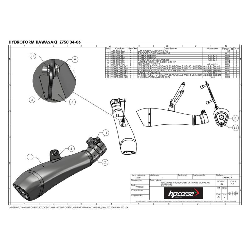 HP CORSE KAHY1015-AB HYDROFORM SATIN KAWASAKI Z 750 2004-2006