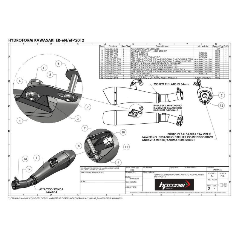 HP CORSE KAHY1001-AB HYDROFORM SATIN KAWASAKI ER-6N/6F/Versys 2005-2011