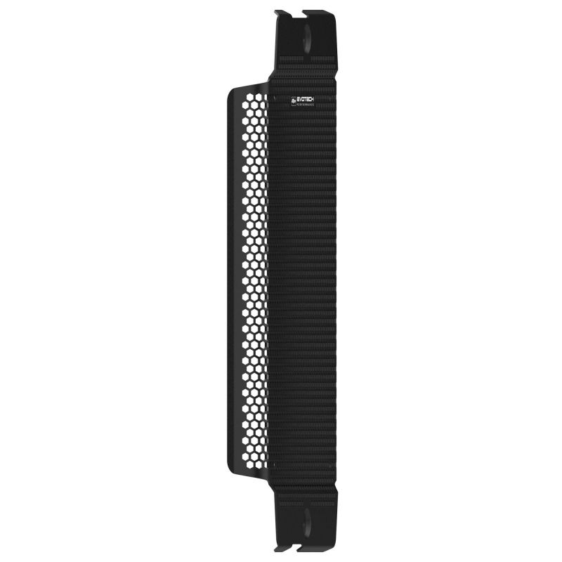El protector de radiador EP protege el radiador de la Triumph Speed Twin 900 de los daños causados por los restos de la carretera y, al mismo tiempo, permite el paso del importante aire de refrigeración. Las aletas de enfriamiento del radiador se doblan fácilmente debido a los desechos arrojados y pueden restringir el aire de enfriamiento, lo que podría provocar un sobrecalentamiento. Además, el núcleo interno de aluminio del radiador puede ser perforado por piedras grandes o pequeñas. Un radiador gravemente dañado puede perder refrigerante y dejar la motocicleta inutilizable por sobrecalentamiento y provocar daños en el motor. Reemplazar un radiador dividido es muy costoso en comparación con el precio de compra de un protector de radiador EP.
