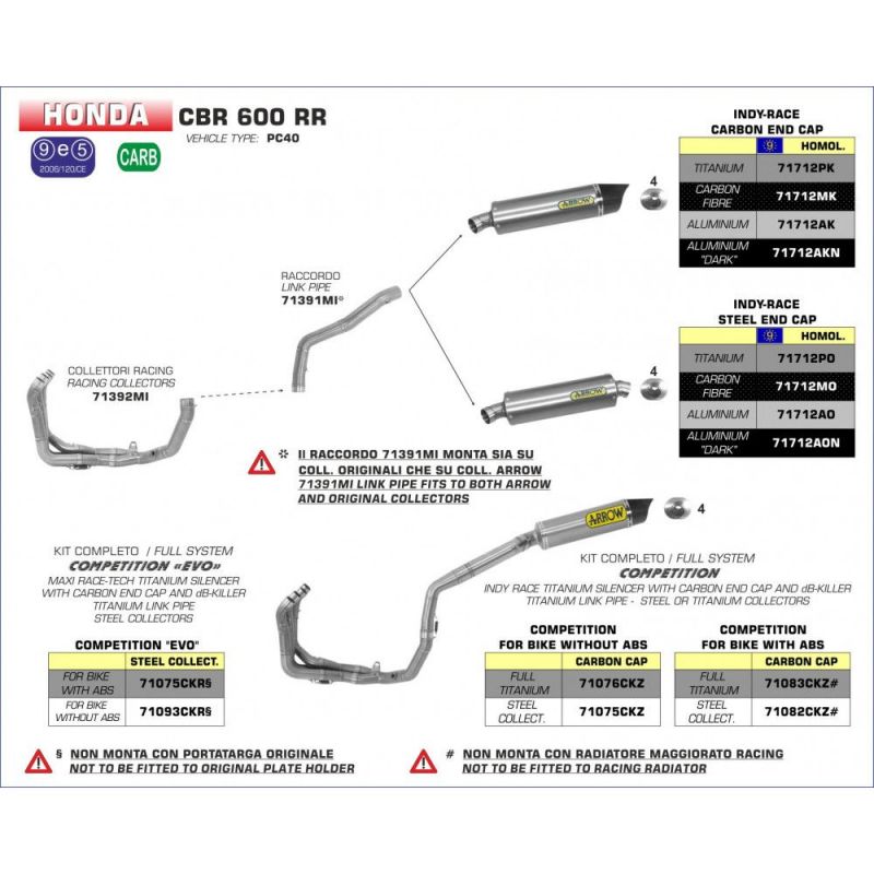 Arrow Raccord central Honda CBR 600 RR 2009-2012 71391MI 600 cc - 2009,2010,2011,2012 - Approbation: non approuvée