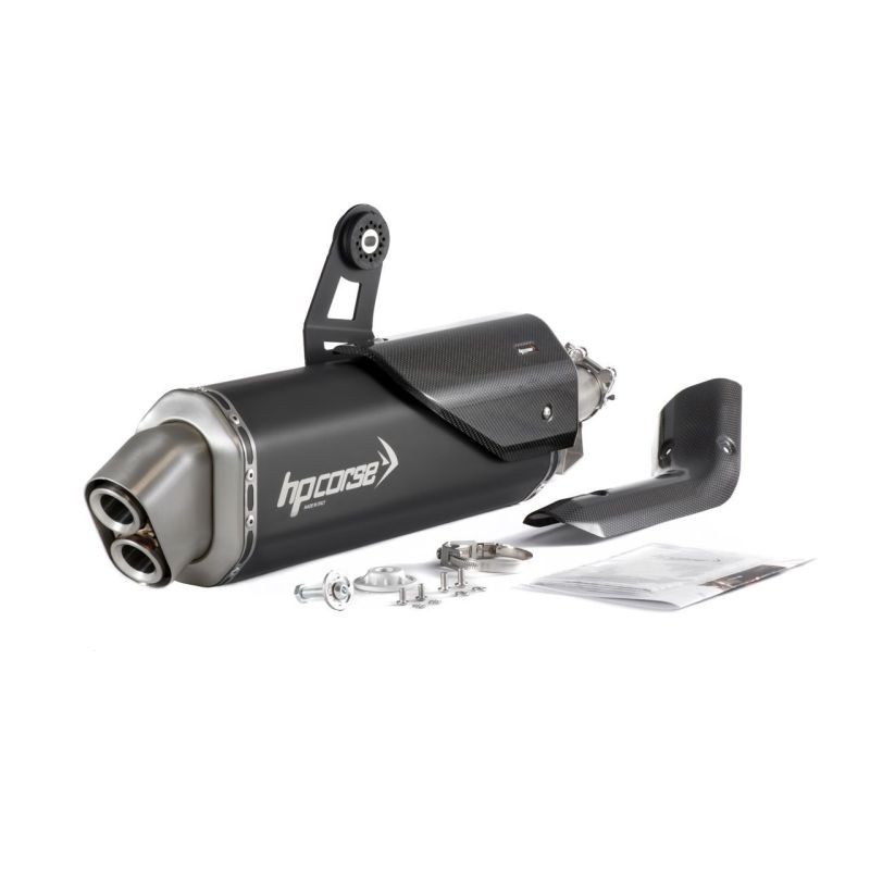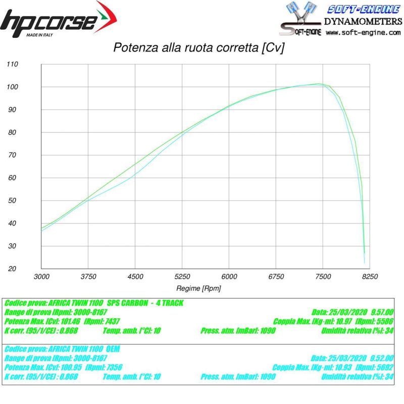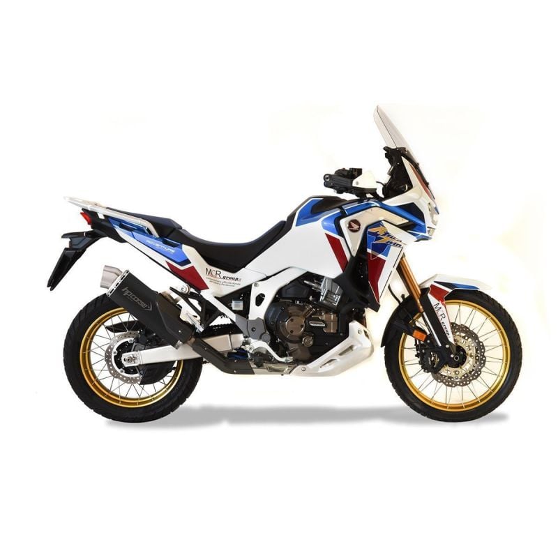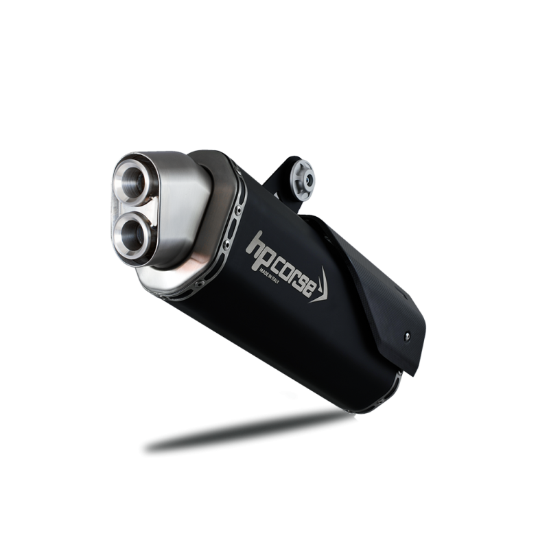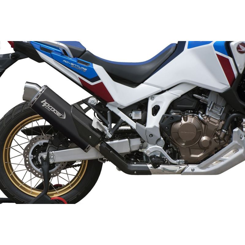 La nuova CRF 1100 Africa Twin è voglia totale di libertà, di grandi spazi, di sterrati pieni di polvere e sassi, ma anche di strade e di asfalto per arrivare ovunque ti porti la voglia di esplorare e conoscere. Cresce la cilindrata, che adesso è di 1084 cc, e insieme crescono la potenza e la coppia. Una moto alla quale HP CORSE ha dedicato due delle sue ultime creazioni: gli scarichi4-TRACK ReSPS CARBON(entrambiomologati Euro 5/5 Plus), nati nel cuore della Motor Valley, dove la qualità e il design sanno forgiare piccoli e grandi capolavori trasformando il metallo in qualcosa che ha davvero il sapore della passione e il nuovissimoSP-1sempreomologato Euro 5/5 Plus.SP-1intitanio slip-on posizionato alto, una soluzione che ormai ci contraddistingue che oltre ad essere esteticamente bellissima, è anche funzionale in quanto può preservare lo scarico in caso di appoggio della moto a terra sul lato destro. Una scelta molto apprezzata per chi pratica fuoristrada e per chi viaggia con valige morbide. SP-1 è uno scarico concamicia in titanio di lunghezza 350 mmalla quale viene inciso illogo HP CORSE al laser, con leggerissimifondelli conici stampatied è dotato di unbeccuccio di uscitafumi unico nel suo genere poichéprivo di saldatureall'angolo di piega. Ilraccordoè in acciaio inox del tiposlip-on a sgancio rapidoe viene accoppiato al terminale medianteboccole in acciaio tornite al CNC. Lecover in carboniopresenti in questa configurazione sono due: la prima più bassa che perfettamente prosegue stilisticamente la parte in acciaio originale sotto al collettore mentre la seconda più piccola protegge il passeggero da eventuali contatti col raccordo. Lo scarico èomologato Euro5/5 Plus, dotato dicertificato di omologazione, garanzia e istruzioni di montaggio.Il 4-TRACK Rdedicato all’AFRICA TWIN ama i grandi spazi e l’avventura. Testato a lungo al banco e su tutte le strade (ON e OFF), rende ancora più aggressivo  il carattere della nuova CRF, che adesso si esalta ai bassi e medi regimi, garantendo massima affidabilità in qualsia situazione oltre a migliorarne le performance dinamiche grazie a un posteriore più leggero e snello, anche esteticamente. 4-TRACK R èomologato Euro5/5 Plus, ha lacover paracalore in carbonio, ilraccordo slip-on, ilfondelli di forma ottagonale, unbeccuccio idroformatosenza saldature e uncorpo silenziatore con logo Hp Corse inciso al laser. Disponibile in tre diversi materiali:titanio, acciaio satinato, acciaio ceramizzato nero.SPS CARBONdifferisce dal 4-TRACK R solo esteticamente poiché è dotato di un bellissimofinale in fibra dicarbonioche va a rivestirne ilbeccuccio idroformato in acciaio.Omologato Euro 5/5 Plus, ha lacover paracalore in carbonio, ilraccordo slip-on, illogo inciso al lasered è disponibile in tre diversi materiali:titanio, acciaio satinato, acciaio ceramizzato nero.