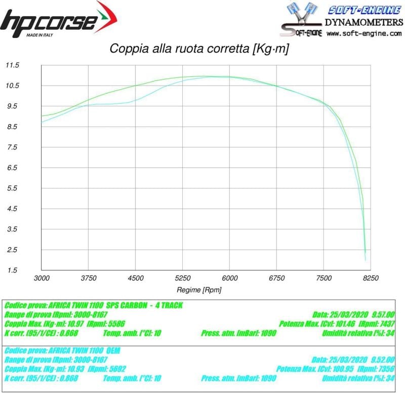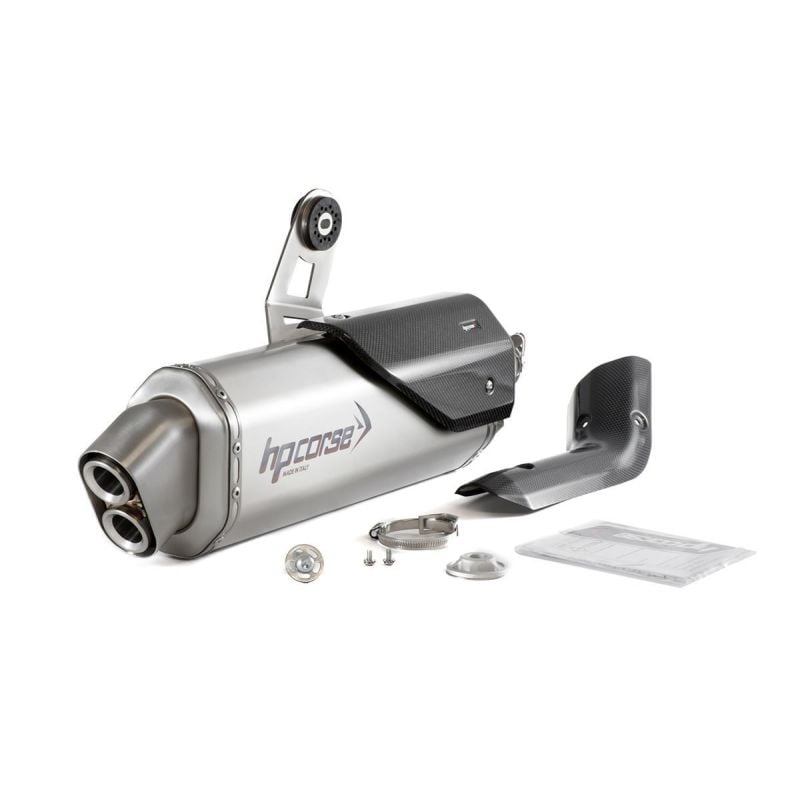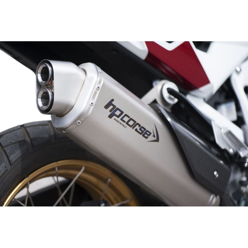 La nuova CRF 1100 Africa Twin è voglia totale di libertà, di grandi spazi, di sterrati pieni di polvere e sassi, ma anche di strade e di asfalto per arrivare ovunque ti porti la voglia di esplorare e conoscere. Cresce la cilindrata, che adesso è di 1084 cc, e insieme crescono la potenza e la coppia. Una moto alla quale HP CORSE ha dedicato due delle sue ultime creazioni: gli scarichi4-TRACK ReSPS CARBON(entrambiomologati Euro 5/5 Plus), nati nel cuore della Motor Valley, dove la qualità e il design sanno forgiare piccoli e grandi capolavori trasformando il metallo in qualcosa che ha davvero il sapore della passione e il nuovissimoSP-1.SP-1in titanio slip-on posizionato alto, una soluzione che ormai ci contraddistingue che oltre ad essere esteticamente bellissima, è anche funzionale in quanto preserva lo scarico -nella maggior parte delle volte- in caso di appoggio della moto a terra sul lato destro. Una scelta molto apprezzata per chi pratica fuoristrada e per chi viaggia con valige morbide. SP-1 è uno scarico con camicia in titanio di lunghezza 350 mm alla quale viene inciso il logo HP CORSE al laser, con leggerissimi fondelli conici stampati ed è dotato di un beccuccio di uscita fumi unico nel suo genere poiché privo di saldature all'angolo di piega. Il raccordo è in acciaio inox del tipo slip-on a sgancio rapido e viene accoppiato al terminale mediante boccole in acciaio tornite al CNC. Le cover in carbonio presenti in questa configurazione sono due: la prima più bassa che perfettamente prosegue stilisticamente la parte in acciaio originale sotto al collettore mentre la seconda più piccola protegge il passeggero da eventuali contatti col raccordo. Lo scarico è omologato Euro 5/5 Plus, dotato di certificato di omologazione, garanzia e istruzioni di montaggio.SP-1in versione bassa con lunghezza del corpo marmitta di 400 mm conferisce alla moto un design decisamente rallistico garantendo un sound profondo e prestazioni migliori in termini di coppia e potenza rispetto allo scarico di serie pur rimanendo nelle tolleranze previste dalla normativa europea. Camicia in titanio e titanio ceramizzato nero con logo inciso al laser, raccordo saldato a TIG e cover para calore integrata in fibra di carbonio. Omologato Euro 5/5 Plus, garanzia e istruzioni di montaggio a corredo.Il4-TRACK Rdedicato all’AFRICA TWIN ama i grandi spazi e l’avventura. Testato a lungo al banco e su tutte le strade (ON e OFF), rende ancora più aggressivo  il carattere della nuova CRF, che adesso si esalta ai bassi e medi regimi, garantendo massima affidabilità in qualsia situazione oltre a migliorarne le performance dinamiche grazie a un posteriore più leggero e snello, anche esteticamente.4-TRACK R è omologato Euro 5/5 Plus, ha la cover paracalore in carbonio, il raccordo slip-on, il fondello di forma ottagonale, un beccuccio idroformato senza saldature e un corpo silenziatore con logo Hp Corse inciso al laser. Disponibile in tre diversi materiali: titanio, acciaio satinato, acciaio ceramizzato nero.SPS CARBONdifferisce dal 4-TRACK R solo esteticamente poiché è dotato di un bellissimo finale in fibra di carbonio che va a rivestirne il beccuccio idroformato in acciaio.Omologato Euro 5/5 Plus, ha la cover paracalore in carbonio, il raccordo slip-on, il logo inciso al laser ed è disponibile in tre diversi materiali: titanio, acciaio satinato, acciaio ceramizzato nero.