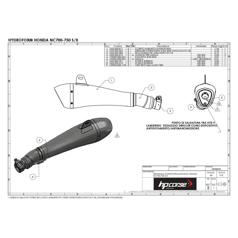 Terminale Hydroform ceramizzato nero omologato (direttiva 97/24/CE-2006/120/CE cap.9) singolo basso + raccordo per catalizzatore originale - HONDA NC700/750