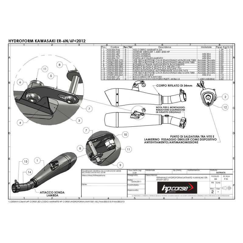 La materia si plasma, ogni resistenza è vinta, l’emozione prende forma. HYDROFORM non è solo il nome di una nuova linea di scarichi, è qualcosa che va oltre le regole per arrivare dove solo l’immaginazione aveva osato spingersi. L'idroformatura è una tecnologia incredibilmente raffinata che consiste nella deformazione del metallo tramite la spinta esercitata da un fluido portato ad elevatissima pressione; spinta che fa aderire la lamiera alla parete dello stampo di formatura. E’ in tal modo che siamo riusciti ad ottenere una forma incredibile a volumetria variabile senza saldature. Il risultato finale è un prodotto unico, sinuoso, emozionante, per un deflusso dei gas di scarico assolutamente eccellente, con spessori della lamiera incredibilmente ridotti, meccanicamente rigidissimo e con una leggerezza assolutamente da record. Gli scarichi della linea HYDROFORM nascono per equipaggiare le più belle naked, sportive e ipersportive presenti nel nostro mercato. Con HYDROFORM il suono, il fascino e la potenza non saranno mai più le stesse.Terminale Hydroform ceramizzato nero omologato (direttiva 97/24/CE-2006/120/CE cap.9) singolo basso + raccordo per collettori originali - KAWASAKI ER-6N/6F VERSYS 2005-2011