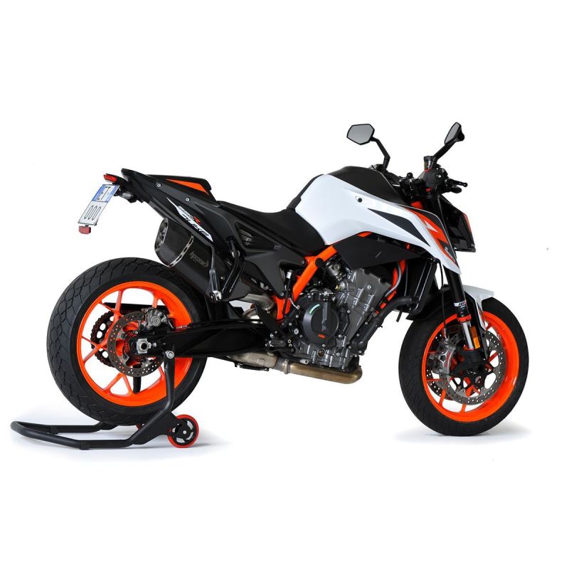 SP-3 CARBON SHORT– Omologato Euro 5SP-3 CARBON SHORT nasce nel cuore della Motor Valley, nel Centro R&D di Bologna. Ha caratteristiche estetiche graffianti con un finale in carbonio dal taglio a forma di diamante. Lungo solo 23 cm, ha linee etreme enfatizzate da una cover in carbonio dedicata. Il corpo silenziatore può essere in Titanio oppure ceramizzato nero. Omologato Euro 5 senza DB Killer in quanto rientra nella tolleranza dei parametri fonometrici previsti. Testato al banco, in pista e sulle strade di tutti i giorni, SP-3 CARBON SHORT garantire affidabilità, assicura prestazioni superiori a tutti i regimi rispetto allo scarico originale della KTM 890 DUKE R. Dotato di un raccordo slip-on per i collettori originali.