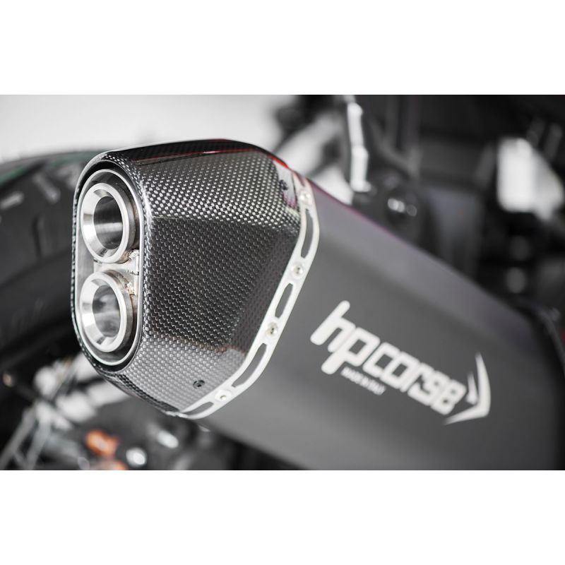SPS CARBON deriva dal 4-TRACK R (con DBK) dal quale si differenzia solo esteticamente per l'impiego del fondello finale in fibra di carbonio che avvolge il beccuccio interno idroformato. SPS CARBON è dedicato alle Maxi Enduro, alle Sport Touring/Adventure e alle Crossover di ultima generazione. SPS CARBON ama l’emozione dei grandi spazi e le strade che si perdono oltre l’orizzonte. Ideato nel Centro R&D di Bologna, la nuova creatura HP CORSE nasce forte, capace di resistere alle situazioni più impegnative e ai tanti chilometri percorsi per accompagnarvi attraverso strade, sentieri, passi di montagna e deserti di tutto il mondo. Testato per oltre un anno al banco e sui percorsi più impegnativi, SPS CARBON garantisce affidabilità e migliori prestazioni rispetto a tutti gli scarichi originali che va a sostituire in particolare ai bassi e medi regimi. SPS CARBON è leggero, ha i fondelli di forma ottagonale, un beccuccio interno in stile classico idroformato avvolto da un bellissimo fondello di uscita in fibra di carbonio e un corpo silenziatore con logo inciso al laser. Disponibile in tre diversi materiali: titanio, acciao satinato, acciaio ceramizzato nero.OMOLOGATO EURO 5 (UE) nr. 24-134/2014-2018/295G