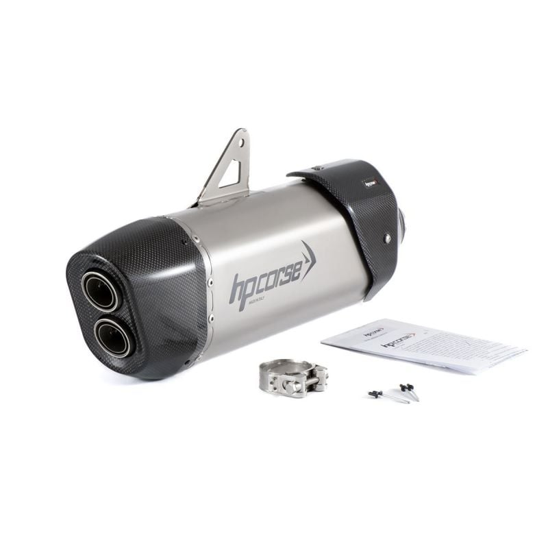 Ideati nel Centro R&D di Bologna, gli scarichi HP CORSE hanno la forma del corpo ottagonale per arrivare ai finali in carbonio davvero unici e bellissimi.Collaudati per resistere a qualsiasi sollecitazione, SP-3 CARBON e SPS CARBON nascono per accompagnare i fan dell’avventura attraverso le strade e i sentieri di tutto il mondo.Provati a lungo al banco e su qualsiasi tipo di strada e terreno, SP-3 CARBON e SPS CARBON assicurano una totale affidabilità e prestazioni migliori rispetto allo scarico originale, soprattutto ai bassi e ai medi regimi, garantendo una migliore coppia a vantaggio della fluidità di guida.Gli involucri sono realizzati in tre diversi materiali, Titanio, Acciaio Ceramizzato nero e Acciaio satinato.SP-3 CARBON e SPS CARBON sono dotati di un para-calore in fibra di carbonio. Hanno il logo inciso al laser e sono disponibili nella versione Slip-On perfettamente adattabile ai collettori originali.Omologati Euro 5.