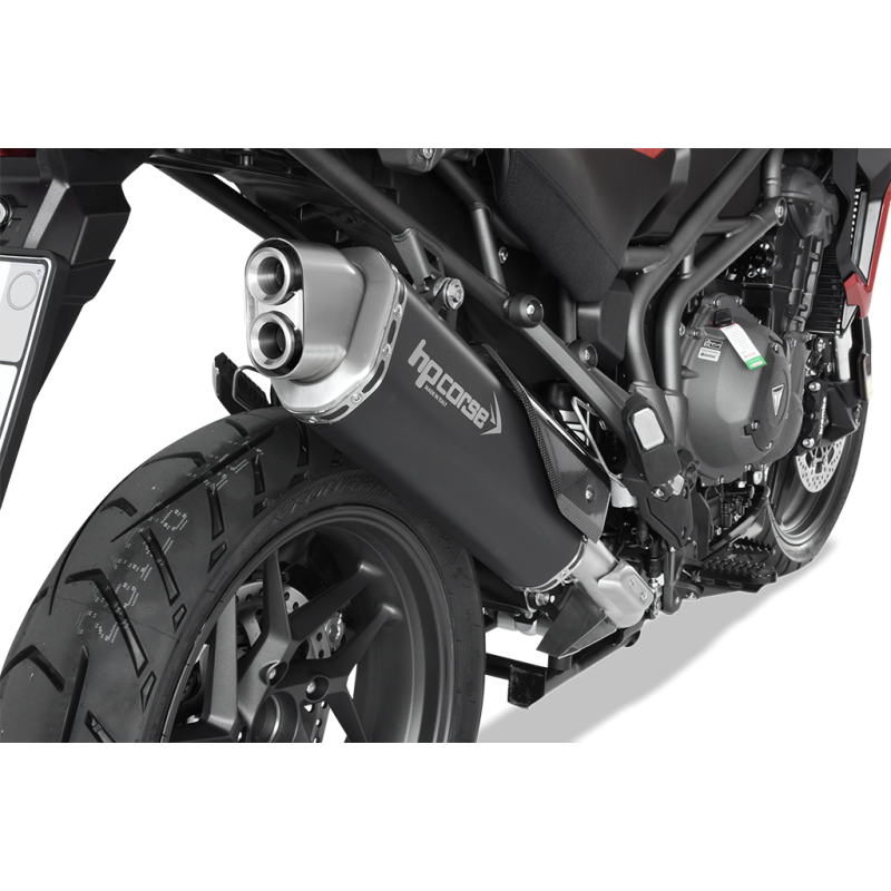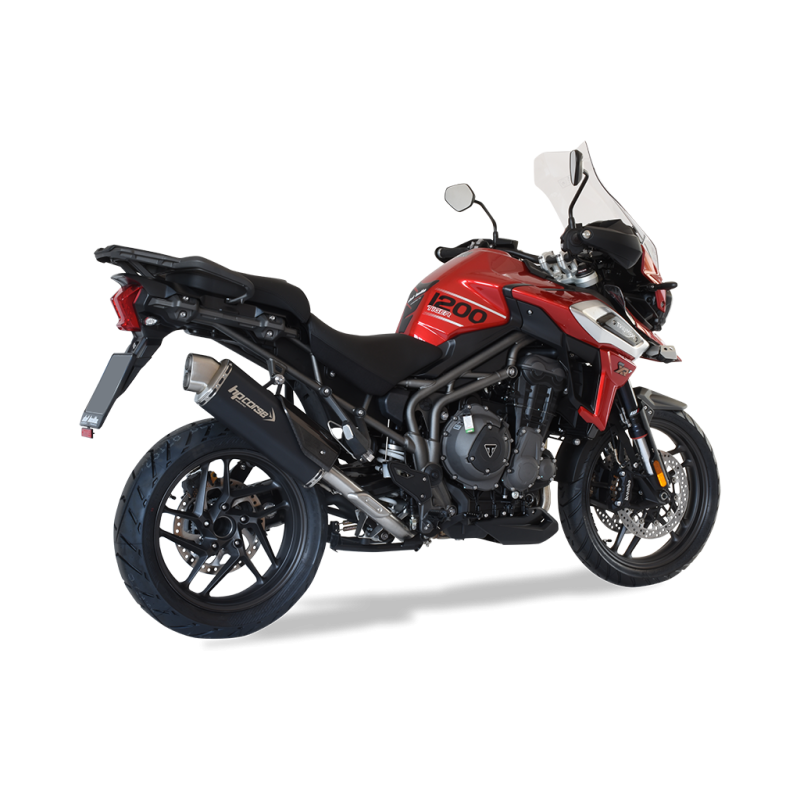 Alla nuova famiglia di Triumph Tiger 1200 appartengono moto pensate per essere guidate puntando in ogni momento al divertimento e alla sicurezza, con tecnologie innovative, una ergonomia ottimizzata e importanti aggiornamenti al motore. Come per il vecchio modello, le categorie sono due: i modelli XR, progettati per raggiungere l’eccellenza su strada, mentre i modelli XC garantiscono la migliora esperienzasu qualsiasi superficie, ON o OFF che sia. Anche i nuovi modelli mantengono la loro grande maneggevolezza, una posizione di guida alta e un profilo deciso per uno stile, un controllo e un comfort superiori. Le nuove Tiger hanno un motore 3 cilindri di 1215 cc incredibilmente potente e un peso inferiore rispetto alla precedente generazioni. Per rendere ancora più sorprendente questa nuova generazione di TIGER 1200, HP CORSE le ha dedicato una nuova linea di scarichi, muscolosi e potenti. Disponibili in tre diversi materiali (Titanio, Acciaio Satinato, Acciaio Nero) e con forme forti ma slanciate, sono in grado di ridisegnare la zona posteriore della maxi endurona inglese esaltandone le qualità estetiche, la maneggevolezza e il suono. Testati al banco e su strada, garantiscono grande affidabilità, un peso ridotto rispetto all’originale Triumph oltre a migliorare le prestazioni del tre cilindri di Hinckley in particolare ai bassi e ai medi regimi. Omologati Euro 4, hanno il fondello di forma ottagonale, il beccuccio idroformato senza saldature oppure in fibra di carbonio.OMOLOGATO EURO 4 (UE) nr. 134/2014 e 2016/1824 G.