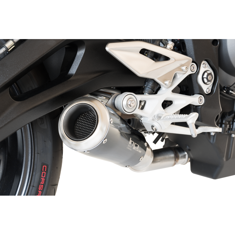 Un grande scarico non nasce mai per caso. Nasce dal sogno di chi lo immagina, dall’esperienza e dalle mani sapienti di chi forgia il metallo e poi lo realizza. Un grande scarico si riconosce dalle linee pulite, essenziali, dal fascino che sa trasmettere. Lo osservi e vedi il desiderio di libertà e tutta la tua voglia di correre, riconosci le tue stesse emozioni, quelle che ti trasformano in un vero “centauro”, un qualcosa di unico e indivisibile dalla tua moto. Lo scarico GP-07 è il piu corto ed il più compatto degli scarichi HP CORSE, nasce per garantire ai nostri clienti forti emozioni. Il GP-07 è costruito in acciaio inox mediante una nuovissima tecnologia capace di fornire allo scarico linee sinuose e morbide. I fondelli sono stampati in leggerissimo acciaio inox e successivamente spazzolati a mano. Le saldature anche esse eseguite "hand made" sono lasciate appositamente a vista per valorizzre la cura artigianale e la maestria di chi lo realizza.(Terminale non omologato RACING)