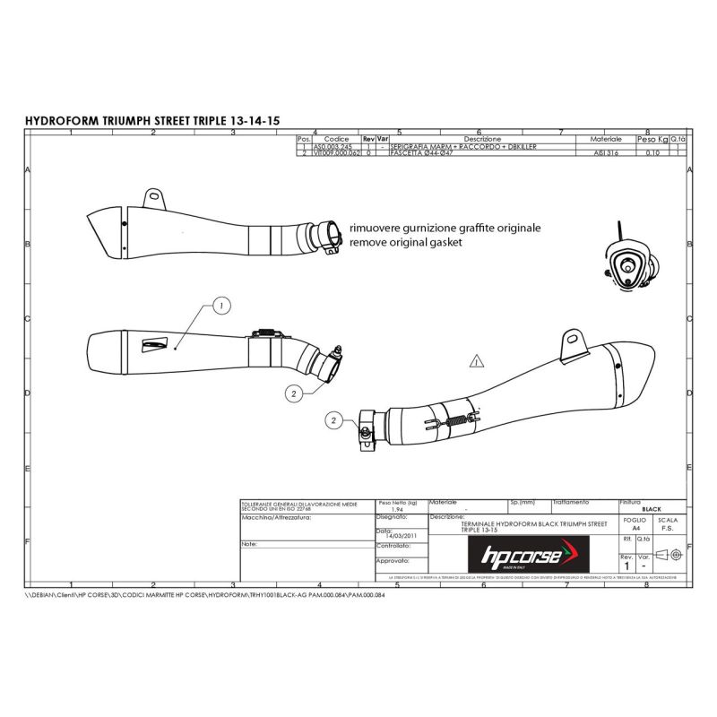 HP CORSE TRHY1001-AG HYDROFORM SATIN TRIUMPH STREET TRIPLE 675 2013-2015