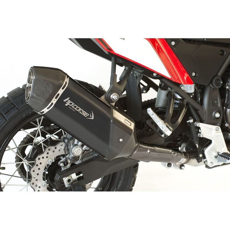SPS CARBON deriva dal 4-TRACK R (con DBK) dal quale si differenzia solo esteticamente per l'impiego del fondello finale in fibra di carbonio che avvolge il beccuccio interno idroformato. SPS CARBON è dedicato alle Maxi Enduro, alle Sport Touring/Adventure e alle Crossover di ultima generazione. SPS CARBON ama l’emozione dei grandi spazi e le strade che si perdono oltre l’orizzonte. Ideato nel Centro R&D di Bologna, la nuova creatura HP CORSE nasce forte, capace di resistere alle situazioni più impegnative e ai tanti chilometri percorsi per accompagnarvi attraverso strade, sentieri, passi di montagna e deserti di tutto il mondo. Testato per oltre un anno al banco e sui percorsi più impegnativi, SPS CARBON garantisce affidabilità e migliori prestazioni rispetto a tutti gli scarichi originali che va a sostituire in particolare ai bassi e medi regimi. SPS CARBON è leggero, ha i fondelli di forma ottagonale, un beccuccio interno in stile classico idroformato avvolto da un bellissimo fondello di uscita in fibra di carbonio e un corpo silenziatore con logo inciso al laser. Disponibile in tre diversi materiali: titanio, acciao satinato, acciaio ceramizzato nero.Omologato EURO 4/5 (UE) nr. 134/2014 e 2016/1824 G.