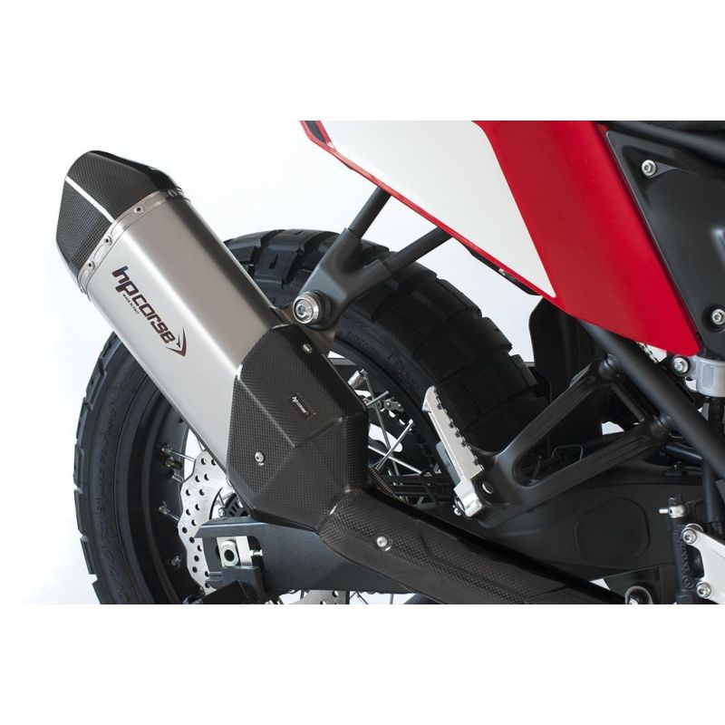 SPS CARBON deriva dal 4-TRACK R (con DBK) dal quale si differenzia solo esteticamente per l'impiego del fondello finale in fibra di carbonio che avvolge il beccuccio interno idroformato. SPS CARBON è dedicato alle Maxi Enduro, alle Sport Touring/Adventure e alle Crossover di ultima generazione. SPS CARBON ama l’emozione dei grandi spazi e le strade che si perdono oltre l’orizzonte. Ideato nel Centro R&D di Bologna, la nuova creatura HP CORSE nasce forte, capace di resistere alle situazioni più impegnative e ai tanti chilometri percorsi per accompagnarvi attraverso strade, sentieri, passi di montagna e deserti di tutto il mondo. Testato per oltre un anno al banco e sui percorsi più impegnativi, SPS CARBON garantisce affidabilità e migliori prestazioni rispetto a tutti gli scarichi originali che va a sostituire in particolare ai bassi e medi regimi. SPS CARBON è leggero, ha i fondelli di forma ottagonale, un beccuccio interno in stile classico idroformato avvolto da un bellissimo fondello di uscita in fibra di carbonio e un corpo silenziatore con logo inciso al laser. Disponibile in tre diversi materiali: titanio, acciao satinato, acciaio ceramizzato nero.Omologato EURO 4/5 (UE) nr. 134/2014 and 2016/1824 G.
